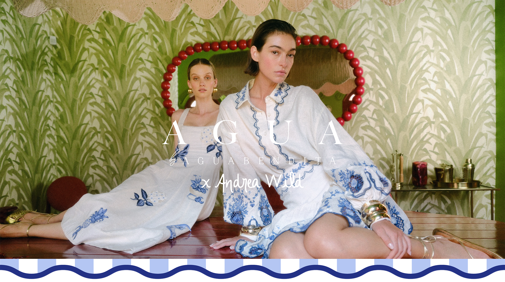 This season, Agua by Agua Bendita presents Wild—a special capsule created in collaboration with Colombian artist Andrea Wild Botero. Inspired by her childhood across the Caribbean coast and countryside of Colombia, each piece is adorned with delicate, hand-drawn motifs that echo sunlit days, tropical fruit, and the timeless magic of home.