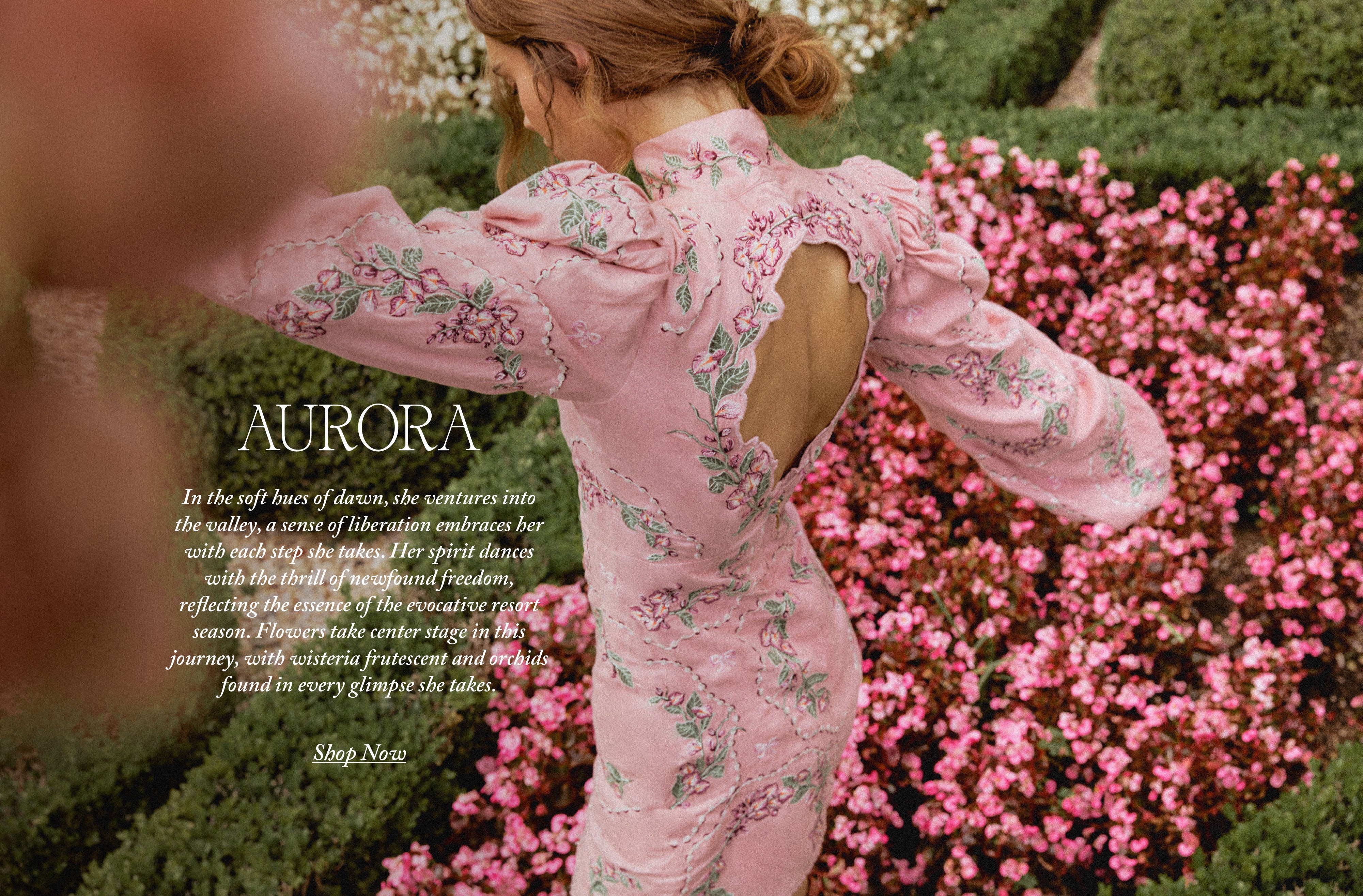 This season Agua by Agua Bendita is thrilled to present Aurora, an enthralling collection inspired by the odyssey of a soul in search of an eternal garden through the valleys of Colombia. Evoking the allure of Colombia’s rich flora and fauna, we present exquisite garments in soft pastel hues reminiscent of the season. The collection showcases exquisite 3D butterflies, specifically the mariposa blanca / lymanopoda paramera, an endemic species of Colombia, alongside beloved coffers, a signature of Agua since its very first collection.