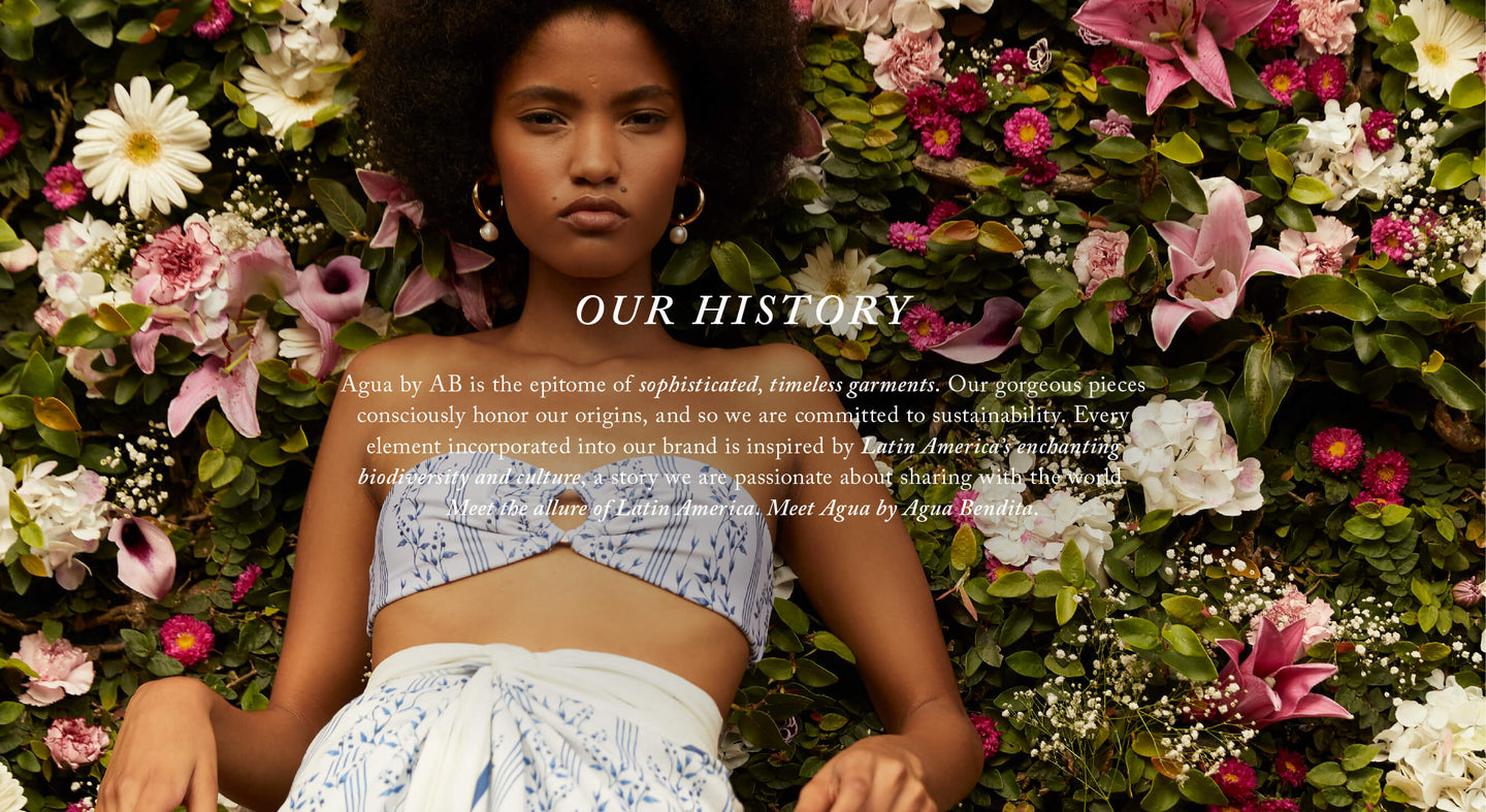 Born in Medellin, Colombia, Mariana Hinestroza and Catalina Alvarez met in college while studying fashion design, where they soon became good friends and business partners. They are both loving mothers. Mariana has two kids, Gael and Valentino, and Catalina has three, Valerio, Alegria, and Amor. Though the duo likes to say they share two more children: Agua Bendita and Agua by AB.