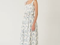 A fully embroidered maxi skirt, the ´Tangelo Floritura´ is a new addition to our selection of maxi skirts. In a white and blue tone, this piece becomes perfect for al fresco brunches with our ´Cornalina Floritura´.